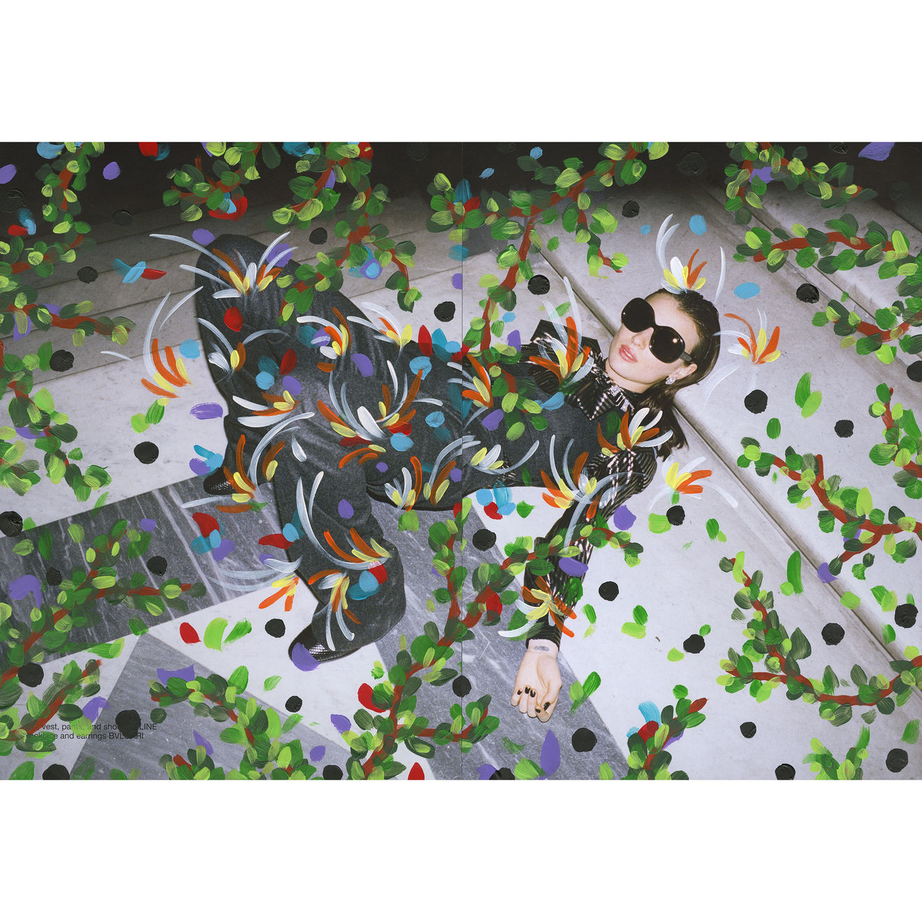 In 2012, De Feo transcended his street art flowers by embracing the concept as the focus of his studio paintings, exploring and expressing these ideas throughout various bodies of work. In his "fashion takeover" paintings, De Feo adds floral-inspired brushwork onto existing printed images from the fashion world which he sources from magazines and city bus stop shelter advertising vitrines. These paintings both harmonize with, as well as celebrate, the underlying images while simultaneously subverting them. The exhibition showcases nine recent examples of these magazine page paintings.